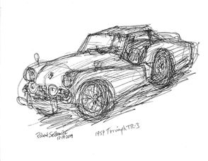 While I have enjoyed drawing sports cars all my life, it was a minor part of my art until I began work on the Catskill Conquest Rally. This drawing of a 1903 Franklin represents my plunge into the entire history of automobiles and hundreds of drawings. Recently I began to work in pastel as well.
